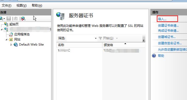 雙擊打開服務(wù)器證書后,點擊右則的導(dǎo)入
