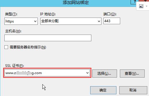 添加網(wǎng)站綁定內(nèi)容:選擇類型為https,端口443和指定對應(yīng)的SSL證書,點擊確定