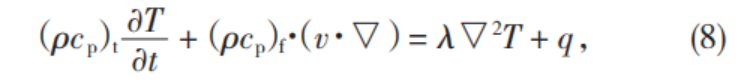 式(8)中,(ρcp)t為多孔介質總的體積比熱容,J/m3;λ為多孔介質的綜合導熱系數,W(/m·K)。