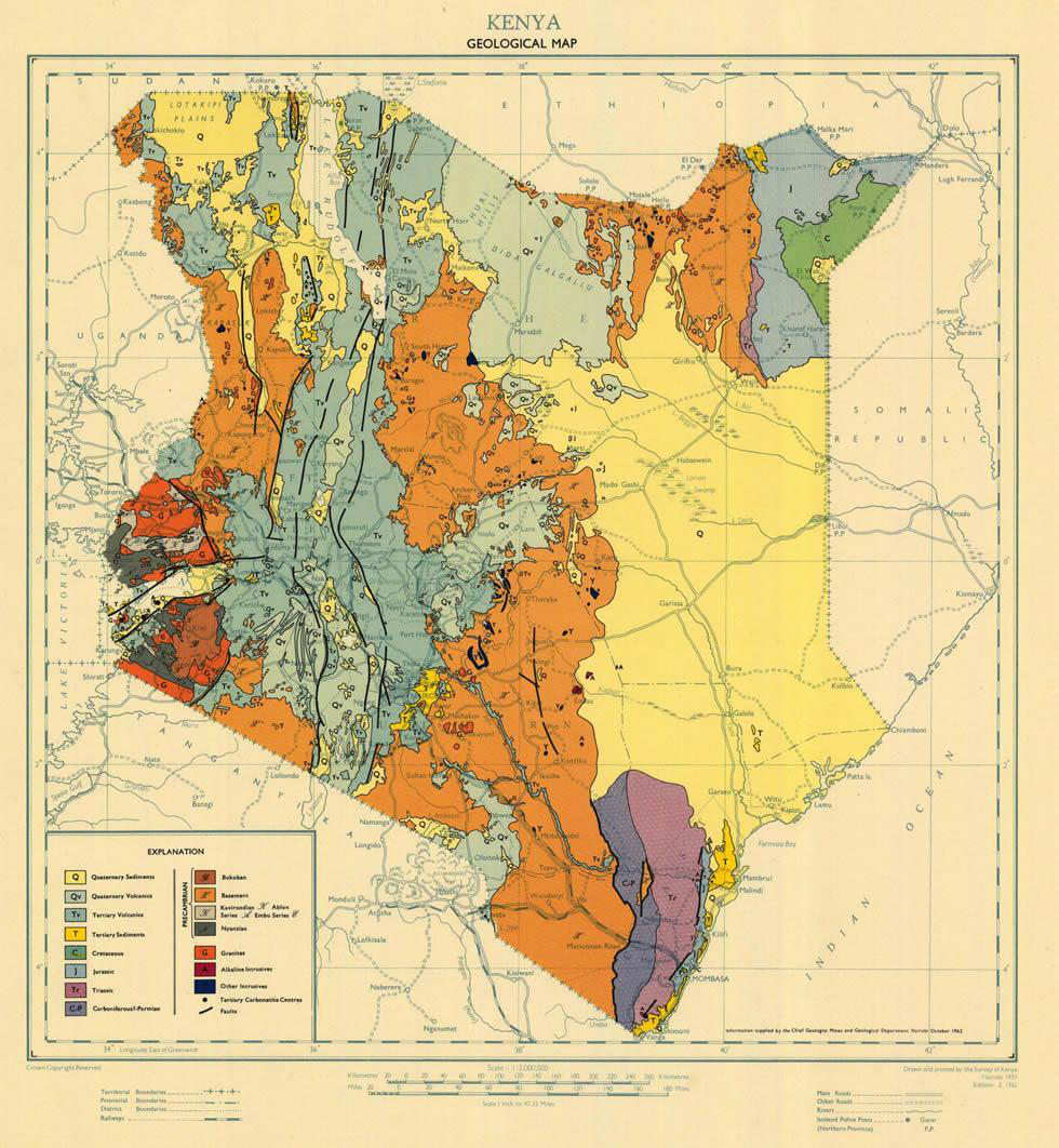 奧爾卡里亞地熱田(Olkaria geothermal field)位于肯尼亞首都內羅畢西北約125千米的肯尼亞裂谷地熱帶內。肯尼亞58.2646萬平方公里,地跨赤道,東與索馬里為鄰,北與埃塞俄比亞、南蘇丹共和國接壤,西與烏干達交界,南與坦桑尼亞相連。東南瀕印度洋,海岸線長536公里,沿海為平原地帶,其余大部分為平均海拔1500米的高原。東非大裂谷東支縱切高原南北,將高地分成東、西兩部分。大裂谷谷底在高原以下450-1000米,寬50-100公里,分布著深淺不等的湖泊,并屹立著許多火山。北部為沙漠和半沙漠地帶,約占全國總面積的56%。河流、湖泊眾多,最大的河流為塔納河、加拉納河。