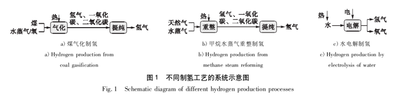 水電解工藝中ALK和PEM制氫工藝對溫度要求較低,技術(shù)成熟,但SOEC制氫工藝的工作溫度較高(約 900℃),目前處于產(chǎn)品試驗(yàn)階段。電能可由太陽能、風(fēng)能、水力能和地?zé)崮?/a>等可再生能源獲取。水電解制氫只產(chǎn)生氫氣和氧氣,沒有二氧化碳排放,通常稱為綠氫,見圖1-c)。光解制氫工藝是利用太陽能的光熱來制取氫氣的前瞻性技術(shù)路線,包括太陽光催化分解水制氫、太陽光電化學(xué)分解制氫以及太陽能熱化學(xué)循環(huán)制氫,目前仍處于研究階段。